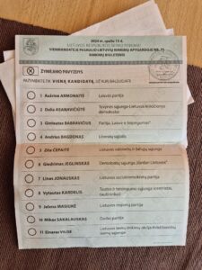 არჩევნები ლიეტუვაშიც არაელექტრონულია. ფაქტების გადამმოწმებელი ორგანიზაციის „Patikrinta 15 min” მიერ მოწოდებული ინფორმაციის თანახმად, ქვეყნის შიგნით საარჩევნო უბნებზე კონვერტები არ გამოიყენება. კონვერტებს იყენებენ ისინი, ვინც საზღვარგარეთ აძლევს ხმას, ვინაიდან მათი ბიულეტენები დასათვლელად ვილნიუსში იგზავნება. როგორც წესი, ბიულეტენის უკანა მხარეს არ ჩანს ამომრჩევლის ნება. ჩვეულებრივ, ბიულეტენი იკეცება და თავად ამომრჩეველი აგდებს მას საარჩევნო ყუთში, რომელიც გამჭვირვალე არ არის. ამომრჩეველმა კაბინაში ხმა მარტომ უნდა მისცეს.