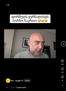 Facebook და Instagram გვერდები (1; 2), ასევე TikTok-ანგარიშები (1; 2; 3) ჟურნალისტის, ირაკლი ტაბლიაშვილის ვიდეოს ავრცელებენ შემდეგი აღწერით: „ფორმულას ჟურნალისტს პორნო ჩაერთო“. სინამდვილეში, ვიდეო რედაქტირებულია.