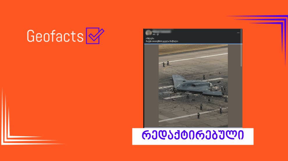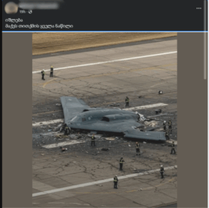 სოციალურ ქსელში ვრცელდება ფოტო, რომელზეც ამერიკული სამხედრო თვითმფრინავის B-2 Spirit-ის ფოტო ვრცელდება, რომელიც ჩამოვარდა და ნამსხვრევებად იქცა. რეალურად, ფოტო ნამდვილი არ არის და ის ხელოვნური ინტელექტითაა გენერირებული.