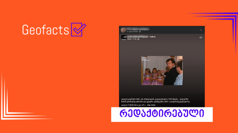 Facebook-ზე გავრცელებული ვიდეო NBC-ის 1992 წლის არქივში არსებული ვიდეოს რედაქტირებული ვერსიაა. NBC-ის მიერ გამოქვეყნებულ კადრებში დონალდ ტრამპი და ჯეფრი ეპშტეინი ნამდვილად ჩანან, თუმცა მასში ბავშვები არსად ფიგურირებენ. სავარაუდოდ, ვიდეო ხელოვნური ინტელექტის გამოყენებითაა დამუშავებული.