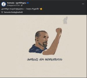 გიორგი ახობაძის ვიზუალურად მსგავსი ილუსტრაცია ტელეკომპანია„ფორმულამ“ სოციალურ ქსელში 2025 წლის 6 აგვისტოს გამოაქვეყნა. მასზე რეალურად შემდეგი წარწერაა დატანილი: „ახობაძე რო თავისუფალია“.