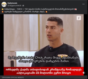 სინამდვილეში, რონალდუს ვიდეო მისი ინტერვიუდანაა აღებული, რომელიც YouTube არხზე, სახელად WHOOP 2025 წლის 20 მაისს განთავსდა. სოციალურ ქსელში გავრცელებულ ვიდეოში რონალდუს საუბრის ტექსტი მისი ტუჩების მოძრაობას არ ემთხვევა, არაბუნებრივია თვალების მოძრაობაც. გარდა ამისა, ვიდეოში ჩანს, რომ მაისურზე მას Chicken Road-ის წარწერა აქვს – თამაშის, რომელიც თითქოს მან შექმნა. ორიგინალ ვიდეოში კი მის მაისურზე სპორტული ბრენდის Nike-ის ლოგოა გამოსახული.