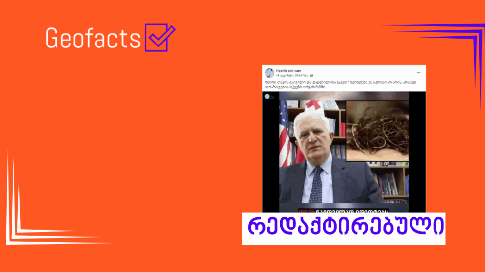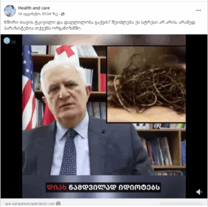 სოციალურ ქსელში Facebook-გვერდი „Health and Care” ავრცელებს ვიდეოს (არქივირებული ბმული), რომელშიც ტელეკომპანია „რუსთავი 2“-ის წამყვანი ნათია ლაზაშვილი დაავადებათა კონტროლის ეროვნული ცენტრის (NCDC-ის) ყოფილი დირექტორის, ამირან გამყრელიძის განცხადებას აჟღერებს: „იდიოტები ხართ, თუ ფიქრობთ, რომ პარაზიტებით არ ხართ დაინფიცირებული“. ჟურნალისტი აგრძელებს: „ამ განცხადების შემდეგ, რომელიც ამირან გამყრელიძემ გააკეთა, ინტერნეტში ნამდვილი სკანდალი ატყდა. ამავე დროს მისი ახალი პროდუქტი გაყიდვების ყველა რეკორდს ხსნის და აფთიაქების შემოსავალს ამცირებს“. ამის შემდეგ, ვიდეოში ამირან გამყრელიძის მიმართვაა ჩასმული: „დიახ, ნამდვილად იდიოტებს ვუწოდებ ყველას, ვინც ჯერ კიდევ არ წმენდს ორგანიზმს პარაზიტებისგან, ან კვლავ ეყრდნობა აბებს 2025 წელს“. სინამდვილეში ვიდეო ნამდვილი არ არის. როგორც წამყვანის, ასევე ამირან გამყრელიძის კადრები ხელოვნური ინტელექტითაა დამუშავებული.