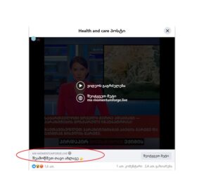 რედაქტირებული ვიდეო Facebook-ზე გვერდმა, სახელად Health and care განათავსა. გვერდზე გადასვლისას ჩანს, რომ მათ პოსტები გამოქვეყნებული არ აქვთ. Facebook-ის რეკლამების ბიბლიოთეკაში ხელმისაწვდომია გვერდის მიერ გაშვებული Amazon-ის პროდუქციის ბერძნულენოვანი რეკლამები (იხილეთ ფოტო). დარეკლამებული პოსტები მათ გვერდზე (ე.წ. Timeline-ზე) არ გვხვდება.