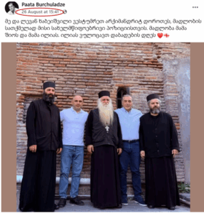 პაატა ბურჭულაძე: მე და ლევან ხაბეიშვილი ვესტუმრეთ არქიმანდრიტ დოროთეს, მადლობის სათქმელად მისი სახელმწიფოებრივი პოზიციისთვის. მადლობა მამა შიოს და მამა ილიას. ილიას ვულოცავთ დაბადების დღეს.