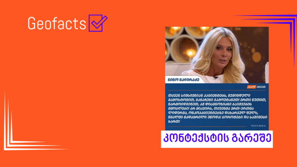 აქედან გამომდინარე, ნინო ნადირაძის პოსტი, რომ ოპოზიციის „ერთ-ერთმა ლიდერმა ონკოპაციენტებზე დახარჯულ ფულს წყალში გადაყრილი უწოდა“, დამატებით კონტექსტს საჭიროებს.