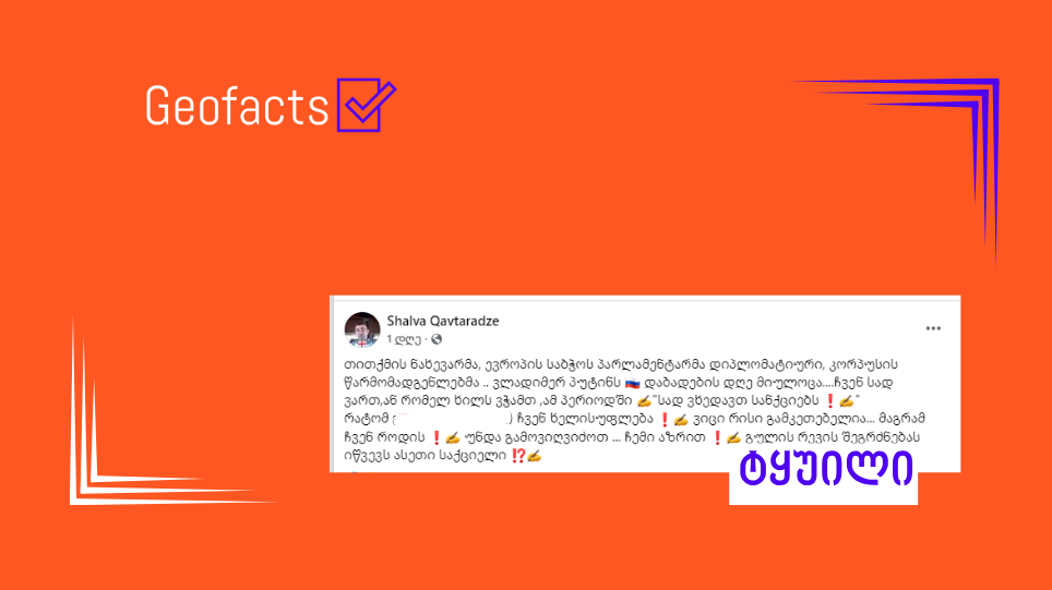სოციალურ ქსელში Facebook-მომხმარებელმა Shalva Qavtaradze, რომლის მიერ გავრცელებული დეზინფორმაცია „ჯეოფაქტსს“ წარსულშიც გადაუმოწმებია (1, 2, 3, 4), პოსტს აქვეყნებს. პოსტის (დაარქივებული ბმული) მიხედვით, ევროპის საბჭოს წარმომადგენელი ქვეყნების თითქმის ნახევარმა და ევროპული ქვეყნების დიპლომატიურმა კორპუსებმა რუსეთის პრეზიდენტ პუტინს დაბადების დღე მიულოცეს. „თითქმის ნახევარმა, ევროპის საბჭოს პარლამენტარმა დიპლომატიური, კორპუსის წარმომადგენლებმა ვლადიმერ პუტინს დაბადების დღე მიულოცა. ჩვენ სად ვართ, ან რომელ ხილს ვჭამთ ამ პერიოდში“, – წერია პოსტში.