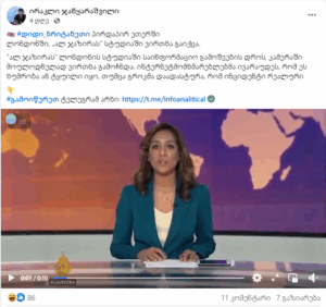 სოციალურ ქსელში Facebook-მომხმარებელი „ირაკლი ჯანყარაშვილი“, რომლის მიერ გავრცელებულ დეზინფორმაციაზე „ჯეოფაქტს“ აქამდეც დაუწერია, ვიდეოს აქვეყნებს (დაარქივებული ბმული). “ალ ჯაზირას“ ლონდონის სტუდიაში საინფორმაციო გამოშვების დროს, კამერაში მოულოდნელად ვირთხა გამოჩნდა. ინტერნეტმომხმარებლებმა ივარაუდეს, რომ ეს ხუმრობა ან ტყუილი იყო, თუმცა გროკმა დაადასტურა, რომ ინციდენტი რეალურია“,-წერს Facebook-ანგარიში.