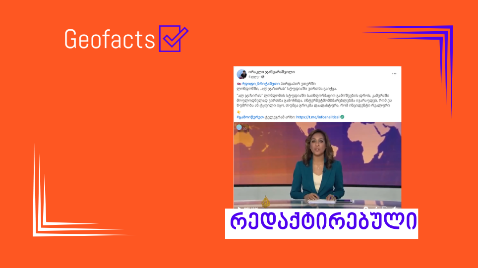 მართლაც, ჟურნალისტი, რომელიც ვიდეოში ჩანს, „Al Jazeera“-ს წამყვანების სიაში არ გვხვდება. ამავდროულად, განსხვავებულია საინფორმაციო გამოშვების სტუდიის დეკორაციაც.