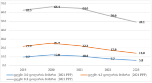 გრძელვადიან პერიოდში სიღარიბის საერთაშორისო ზღვრებს მიღმა მცხოვრები მოსახლეობის წილი შემცირებულია (იხილეთ გრაფიკი 3), თუმცა მოსახლეობის თითქმის ნახევარი მაინც სიღარიბეში ცხოვრობს.