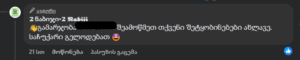 პოსტის ქვემოთ, მომხმარებლების მიერ დაწერილ ყველა კომენტარს გვერდი შემდეგი ტექსტით პასუხობს: „გამარჯობა. შეამოწმეთ თქვენი შეტყობინებები ახლავე. საჩუქარი გელოდებათ“.