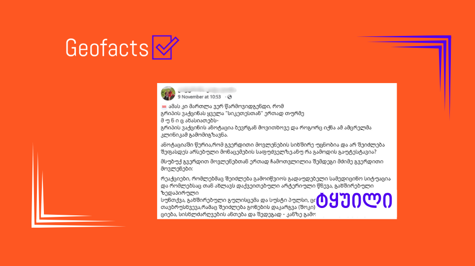 სოციალურ ქსელში მომხმარებლები ავრცელებენ (ბმული 1, 2, 3) ინფორმაციას, თითქოს „გრიპის ვაქცინის ერთ-ერთი მთავარი გვერდითი მოვლენა არის მუნი“ (დაარქივებული ბმული).