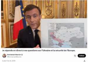 აღნიშნული კადრი მოჭრილია ემანუელ მაკრონის ვიდეოდან, რომელიც, გარდა მისი ოფიციალური სოციალური ქსელებისა, 2025 წლის 20 თებერვალს BFMTV-ის არხზეც გადაიცემოდა. ამ მედიის ვებგვერდზე ვიდეოს ამ მონაკვეთის ნახვისას, ჩანს, რომ თავდაპირველად კადრი სარკის ეფექტით ჩანდა, რომელიც 2:08 წუთიდან იცვლება და გასწორებული კადრი ჩნდება.