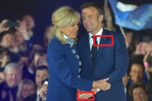 კიდევ რამდენიმე დეტალი, რაც ადასტურებს, რომ ვიდეო სარკის ეფექტითაა გადაღებული, არის საქორწინო ბეჭედი და სამკერდე ნიშანი, რომელსაც, მაკრონი ჩვეულებრივ მარცხენა ხელზე და მარცხენა მხარეს ატარებს, ვიდეოში მარჯვენა მხარეს ჩანს.