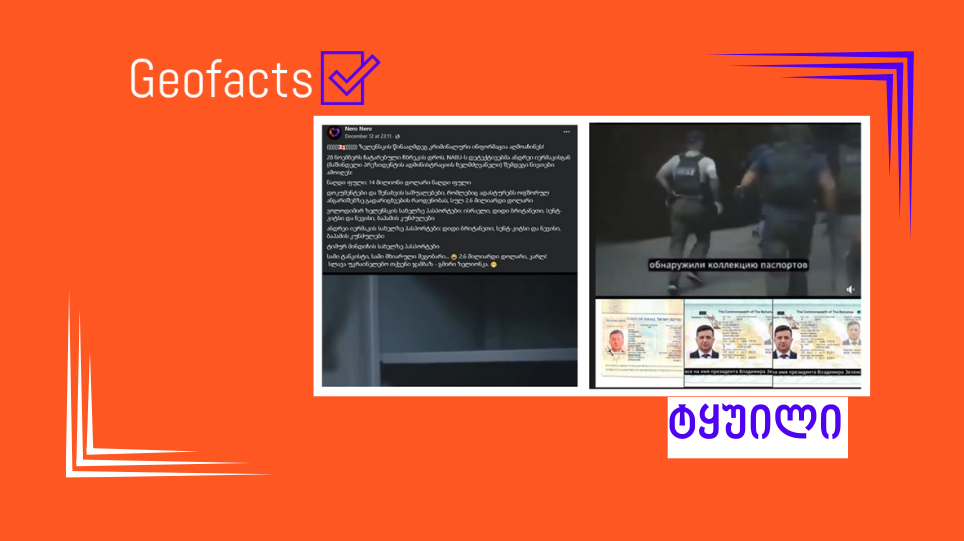 სოციალურ ქსელში Facebook-ანგარიში Nero Nero, რომლის მიერ გავრცელებული ინფორმაცია „ჯეოფაქტსს“ წარსულშიც გადაუმოწმებია, შემდეგ ინფორმაციას ავრცელებს: „ზელენსკის წინააღმდეგ კრიმინალური ინფორმაცია აღმოაჩინეს!