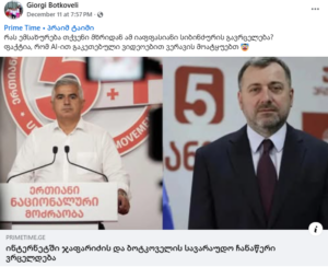 ასევე ნიშანდობლივია, რომ ჩანაწერი ქართულ მედია სივრცეში, მათ შორის არც „ქართული ოცნების“ მხარდამჭერი სარედაქციო პოლიტიკის მქონე მედიებში გავრცელებულა. მას არც „ქართული ოცნების“ წევრები გამოხმაურებიან. აუდიო ჩანაწერი „ქართული ოცნების“ მხარდამჭერების მსგავსად 11 დეკემბრის საღამოს 6 საათის ფარგლებში გამოაქვეყნა ონლაინგამოცემა „პრაიმ ტაიმმა“, თუმცა სტატიაში მხოლოდ ანტი-ოპოზიციური და ანონიმური ტიკტოკ-გვერდის მიერ გამოქვეყნებული ვიდეო არის მითითებული, რომელიც სანდო წყაროს არ წარმოადგენს. „პრაიმ ტაიმის“ სტატიას გამოეხმაურა გიორგი ბოტკოველი, რომელმაც სოციალურ მედიაში დაწერა, რომ ჩანაწერი ხელოვნური ინტელექტის მიერ არის შექმნილი. პოსტი გამოაქვეყნა გია ჯაფარიძემ, რომელმაც ჩანაწერს „ფაბრიკაცია და ფეიკი“ უწოდა. მისი მტკიცებით, გიორგი ბოტკოველთან სატელეფონო საუბარი არასდროს ჰქონია.