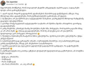 ნიშანდობლივია ასევე, რომ ის მტკიცებები, რომლებიც ჩანაწერის შინაარსიდან გამომდინარეობს, ჩანაწერის გამოქვეყნებამდე ვრცელდებოდა „ქართული ოცნების“ მაღალჩინოსნების მიერ.