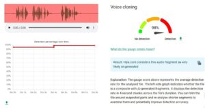 დამატებით, InVID & WeVerify-ის ხელსაწყოში ჩაშენებული აუდიო დეტექტორის Hiya-ს დახმარებით მიღებული შედეგების მიხედვით, ვიდეო 98%-ით ხელოვნური ინტელექტის მიერაა შექმნილი.