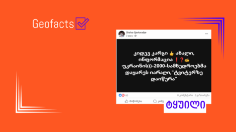 სოციალურ ქსელში Facebook-მომხმარებელი Shalva Qavtaradze, რომლის მიერ გავრცელებული დეზინფორმაცია „ჯეოფაქტსს“ წარსულშიც გადაუმოწმებია (1, 2, 3, 4, 5)...