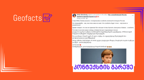 სოციალურ ქსელში Facebook-მომხმარებელი ნონა შარაბიძე, რომლის მიერ გავრცელებული დეზინფორმაცია „ჯეოფაქტსს” არაერთხელ გადაუმოწმებია (1; 2; 3), ავრცელებს პოსტს. მისი...