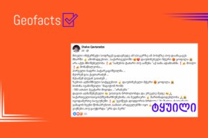 სოციალურ ქსელში Facebook-მომხმარებელი Shalva Qavtaradze, რომლის მიერ გავრცელებული დეზინფორმაცია „ჯეოფაქტსს“ წარსულშიც გადაუმოწმებია (1, 2, 3, 4), ამტკიცებს...