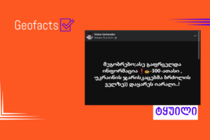 სოციალურ ქსელში Facebook-მომხმარებელმა Shalva Qavtaradze, რომლის მიერ გავრცელებული დეზინფორმაცია „ჯეოფაქტსს“ წარსულშიც გადაუმოწმებია (1, 2, 3, 4), პოსტს...