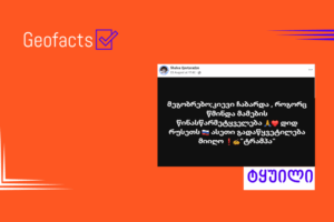 სოციალურ ქსელში Facebook-მომხმარებელი Shalva Qavtaradze, რომლის მიერ გავრცელებული დეზინფორმაცია „ჯეოფაქტსს“ წარსულშიც გადაუმოწმებია (1, 2, 3, 4), წერს...