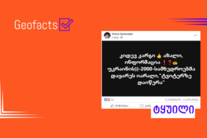 სოციალურ ქსელში Facebook-მომხმარებელი ნონა შარაბიძე, რომლის მიერ გავრცელებული დეზინფორმაცია „ჯეოფაქტსს” არაერთხელ გადაუმოწმებია (1; 2; 3), ავრცელებს პოსტს...