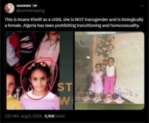 В социальных сетях во всем мире, в том числе и на постсоветском пространстве, активно распространяется информация (1; 2; 3) об алжирской женщине-боксере Имане Халиф – согласно утверждениям на самом деле она является трансгендером и поэтому ее выступления среди женщин является аномалией, свидетельствующей о «загнивании» западного мира.