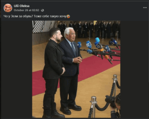 В то же время фотографии встреч Зеленского и Антониу Кошты в 2024 и 2025 годах доступны в галерее AFP. На снимках видно, что на Зеленском нет обуви такого большого размера.