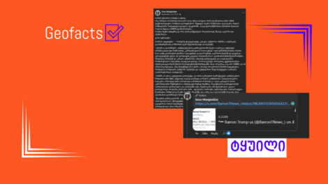 Facaebook-ის მომხმარებელი Soso Manjavidze სოციალურ ქსელში აქვეყნებს პოსტს, რომელშიც მიუთითებს, რომ აღნიშნული ტექსტი აშშ-ის პრეზიდენტის, დონალდ ტრამპის, ვაჟს, ბარონ...