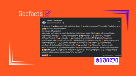 სოციალურ ქსელში Facebook-მომხმარებელი Shalva Qavtaradze, რომლის მიერ გავრცელებული დეზინფორმაცია „ჯეოფაქტსს“ წარსულშიც გადაუმოწმებია (1, 2, 3), წერს, რომ საქართველოს...