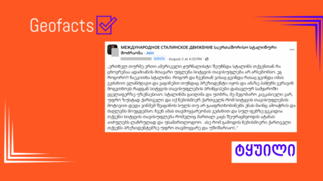 სოციალურ ქსელში Facebook-მომხმარებელი მაია თვალთვაძე, რომლის მიერ გავრცელებული დეზინფორმაცია „ჯეოფაქტსს“ წარსულშიც გადაუმოწმებია (1, 2, 3, 4, 5) ვიდეოს აქვეყნებს...
