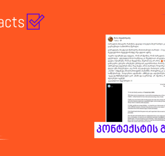 სოციალურ ქსელში Facebook-ანგარიში „მაია თვალთვაძე“, რომლის მიერ გავრცელებული დეზინფორმაცია „ჯეოფაქტსს“ წარსულშიც გადაუმოწმებია (1, 2, 3, 4, 5,6), ისრაელის მთავარი...